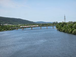 Von dort über die Moselbrücke und weiter auf der Deutschen Seite. Wir trafen auf Spazierende, Velofahrende, kleine und grosse Schiffe sowie Gänsescharen und Entenfamilien. Ob es in Oberbillig wirklich so billig ist, haben wir nicht ausprobiert sondern sind einfach vorbeigefahren der Saar entgegen, die in Konz in die Mosel mündet. Der Fluss ist danach deutlich breiter und recht befahren von grösseren Frachtschiffen.