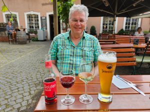 Wie kommst du denn drauf, dass alle Getränke zu Stefan gehören? Und hier noch die Auflösung der Getränke: Benediktiner alkoholfreies Weizen, Weisswein mit dem klingenden Namen Sommerparadies und einer leichten Restsüsse. Was wie eine Cola aussieht landete in meinem Magen und war eine Apfel-Holunder-Cassis-Schorle.