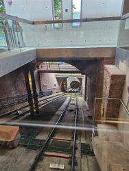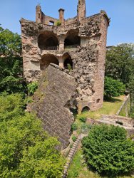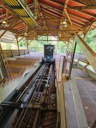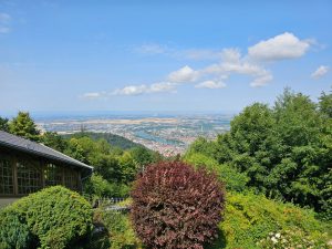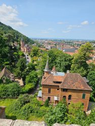 Ein bisschen musste ich schon schmunzeln ob der Bezeichnung „Bergbahn“. Sie geht von ca. 130 m hoch auf etwas über 500 m. Die erste Sektion führt über die Kreuzung beim Schloss hoch zur Station Molkenkur und ist eine moderne Standseilbahn. Und wer hat sie erbaut? Garaventa. Die zweite Sektion führt dann auf den „Gipfel“ dem Königsstuhl. Diese Bahn ist seit 1907 in Betrieb und entsprechend knarriger und langsamer unterwegs. Oben gibt es eine schöne Aussicht auf Heidelberg und quer über die Rheinebne bis zu den Hügeln des Pfälzerwaldes. Die Ruine des Schlosses weiter unten ist beeindruckend gross. Wieviel Liter Wasser mussten dort wohl täglich in alle Zimmer in die Waschbecken verteilt werden. Und wieviele Kohlebecken brauchte es, um im Winter die Zimmer nur etwas zu erwärmen. Es hatte sicherlich viel mehr Dienstpersonal als Schlossmenschen, um den ganzen Karren am Laufen zu halten.