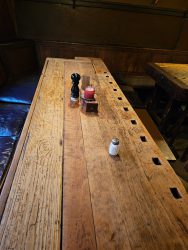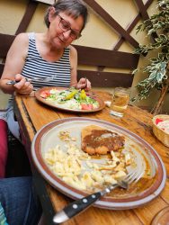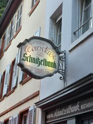 Den Nachmittag über nutzten wir unsere Familien-Tageskarte und führen mit den Strassenbahnen von einer Endstation zur anderen. Und als sich dann unsere Mägen meldeten, machten wir uns auf die Suche nach der „Schnitzelbank„. Die Weinstube ist in einem alten Haus untergebracht, das früher eine Küferwerkstatt beherbergte, wo die Fässer für die Pfälzer-Wein hergestellt wurden. Der Name der Weinstube verpflichtet und so gibt es heute Schnitzel in unterschiedlichen Varianten auf dem Speiseplan. Als Tische dienen alte Werkbänke. Meine Bewertung: Originelle Einrichtung, charmante Bedienung, leckeres Essen, gutes Preis-Leistungsverhältnis. Wer unbedingt eine Platz will, reserviert am besten.