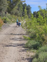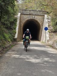 Die meisten Strecken führten uns jedoch entweder über wenig befahrene Nebenstrassen oder ab Rians über die EV8. Dies ist ein Teil der ehemaligen Zugsverbindung von Meyrargues bis Nizza. Angriffe der deutschen Wehrmacht auf die Viadukte während ihres Rückzugs 1944 setzten dieser Zugsstrecke ein Ende, weil sich der Wiederaufbau zu teuer gewesen wäre. Heute ist sie zum Veloweg ausgebaut und Teil der EV8. Sogar die Tunnels sind ausgebaut und ersparen die Steigung über den Hügel, der durchbohrt wurde. Dank der bequemen Strecke konnten wir auch die Umgebung und die Natur geniessen. Besonders beeindruckt haben mich die grossen Orchis, die am Wegrand blühten.