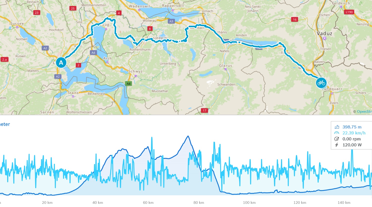 Nach gut 147 km fuhren wir gegen 20 Uhr in Bad Ragaz ein und waren froh, dass alles geklappt hat mir der Reservation im Schloss-Hotel. Vom Duschen erfrischt aber trotzdem recht müde genossen wir im Ort einen Fitness-Teller. Und dann nur noch ab ins Bett und Beine hoch.